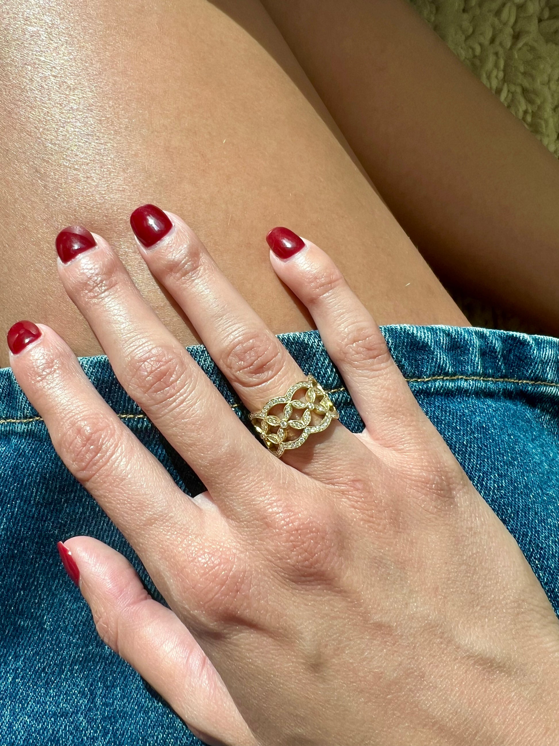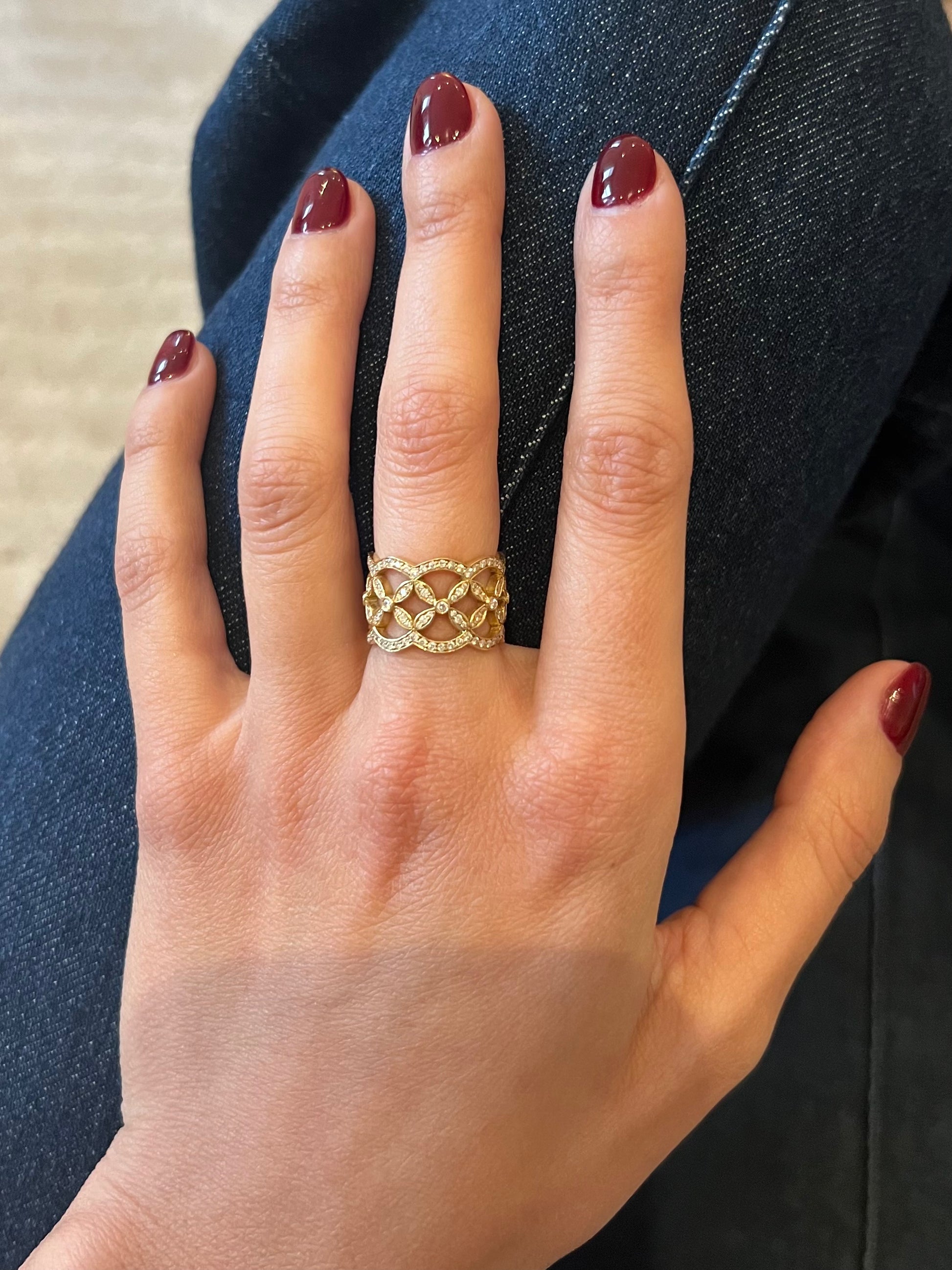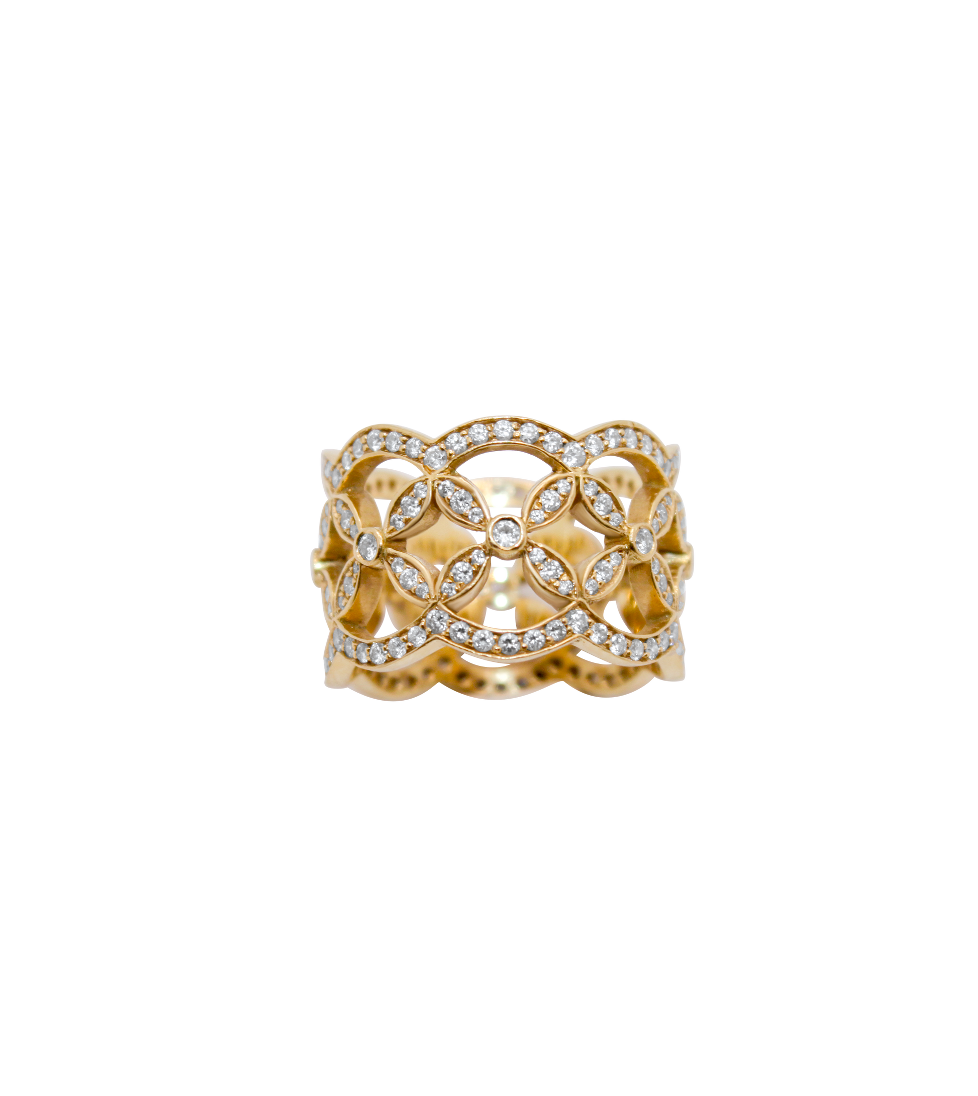 Crafted with 18K gold, our Lace ring is set with 216 brilliant diamonds totalling 1.29 carats.