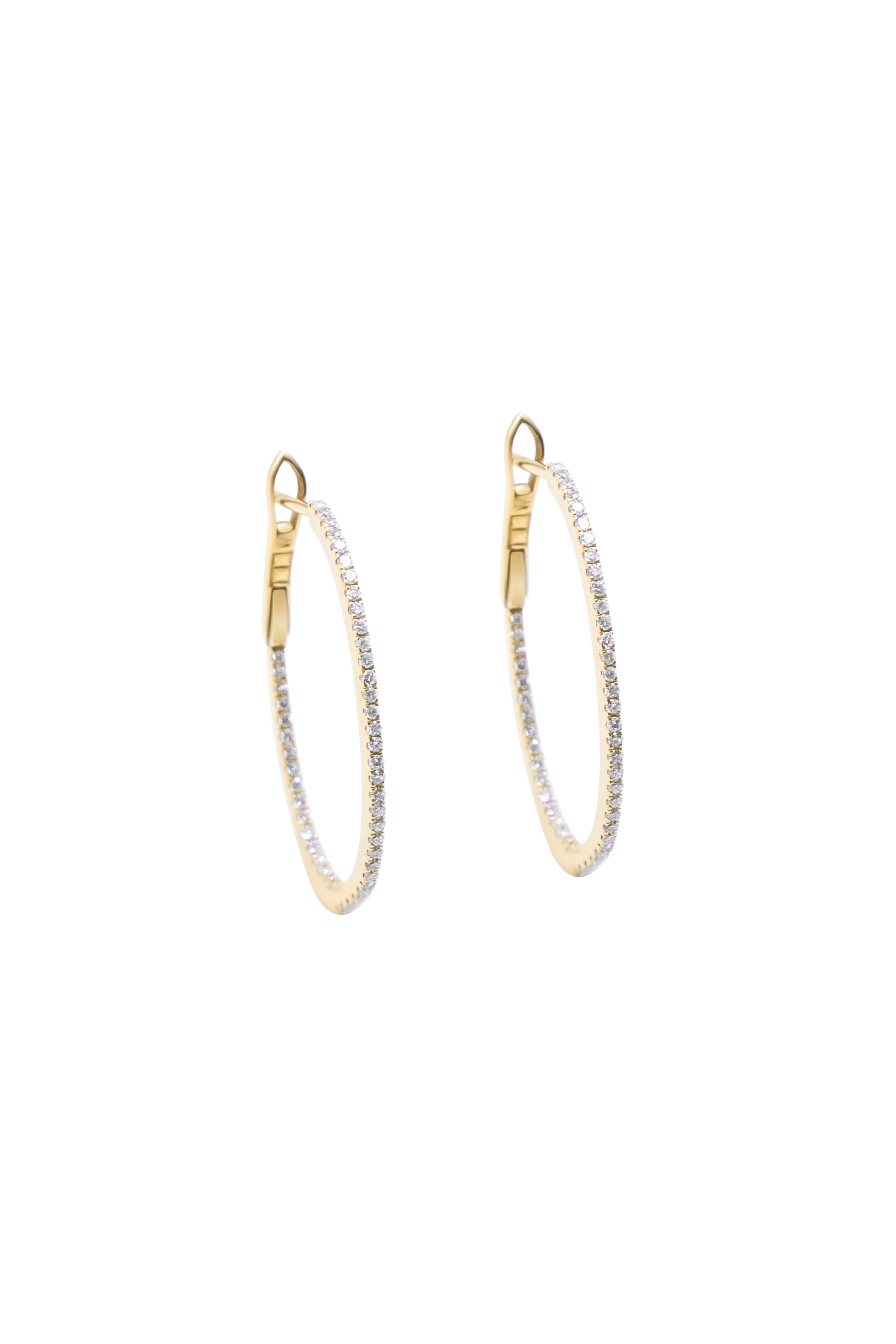Our Mini oval hoops are crafted with 18K gold and set with 0.58 carats of brilliant diamonds.